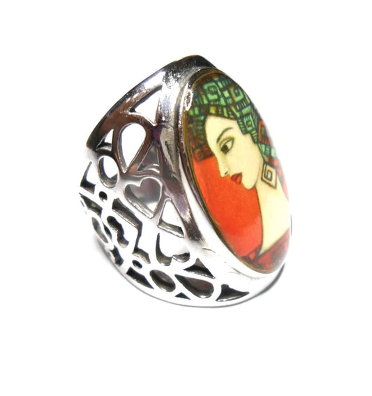 Oval Stainless Steel Ring SSR1008 - Size 9